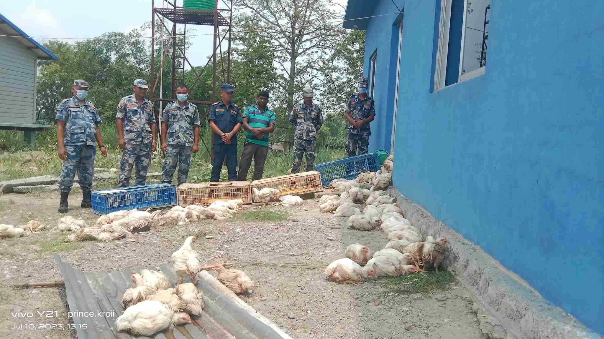 भारतबाट ल्याइएका अबैध कुखुरा नवलपरासी सशस्त्र प्रहरीद्धारा नष्ट